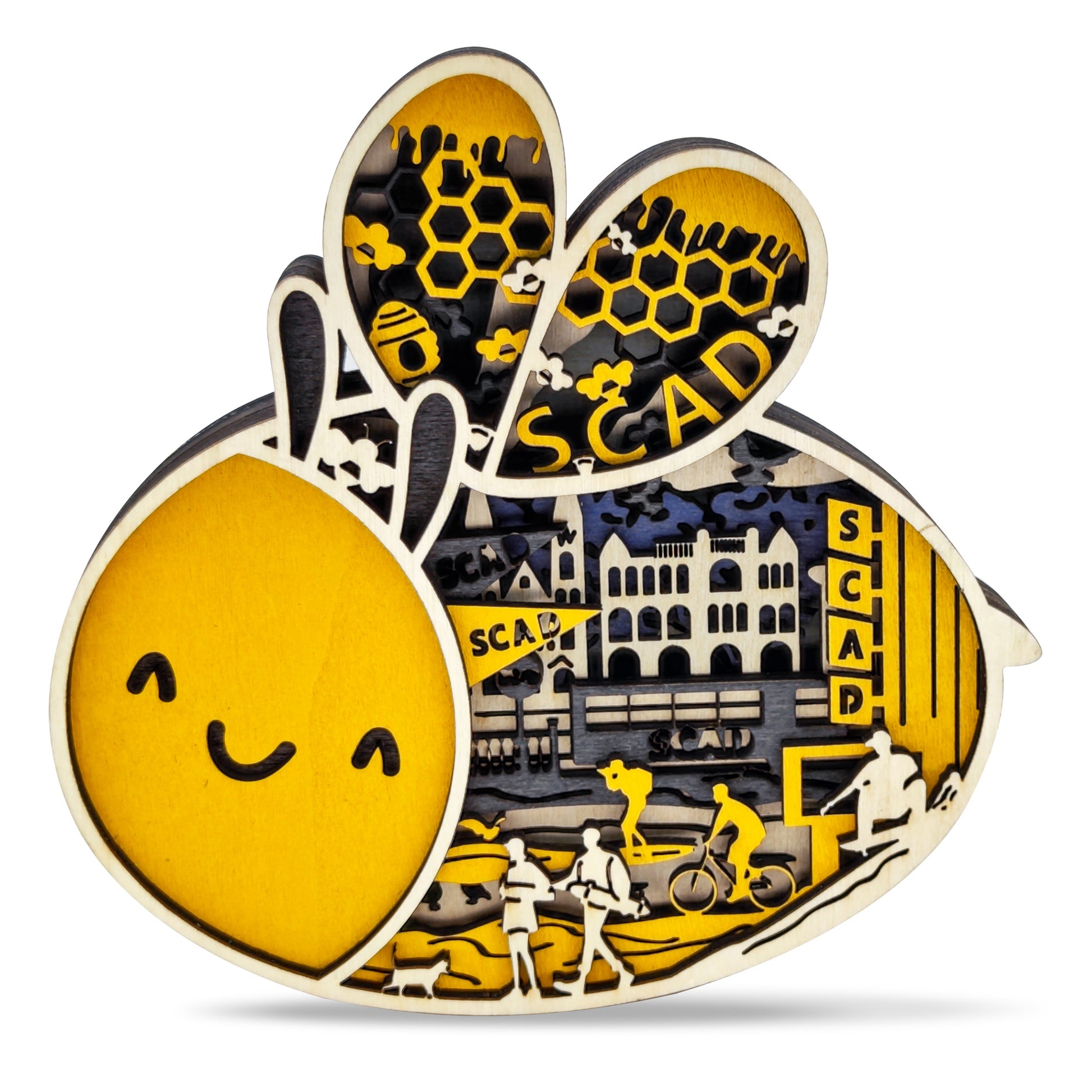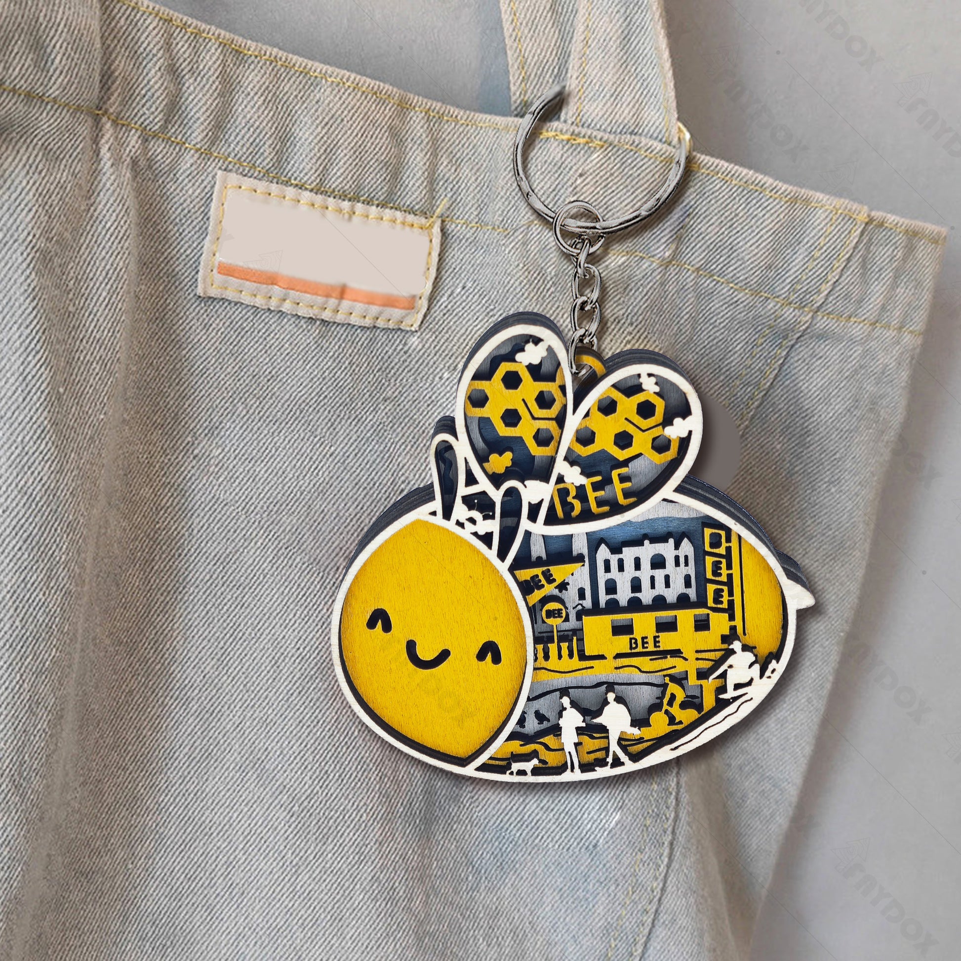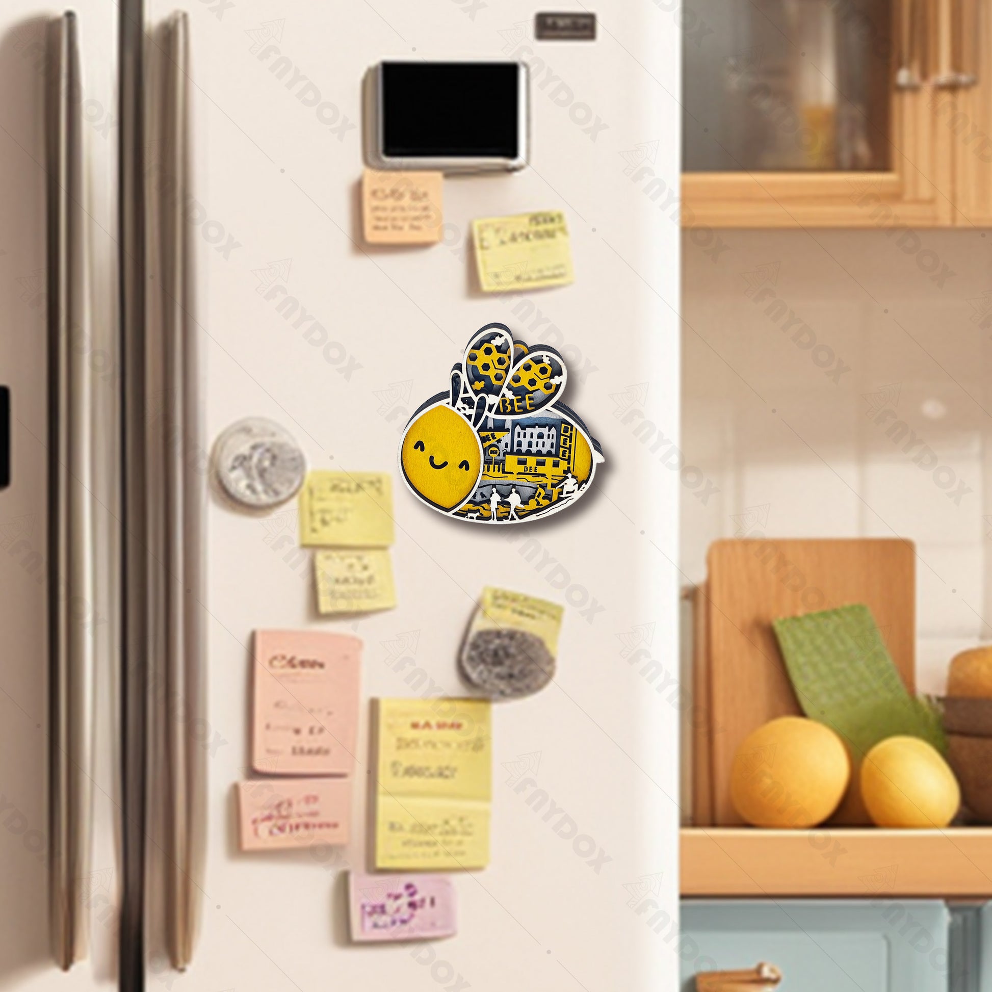 Bee Wood Carving Refrigerator Magnet Pendant