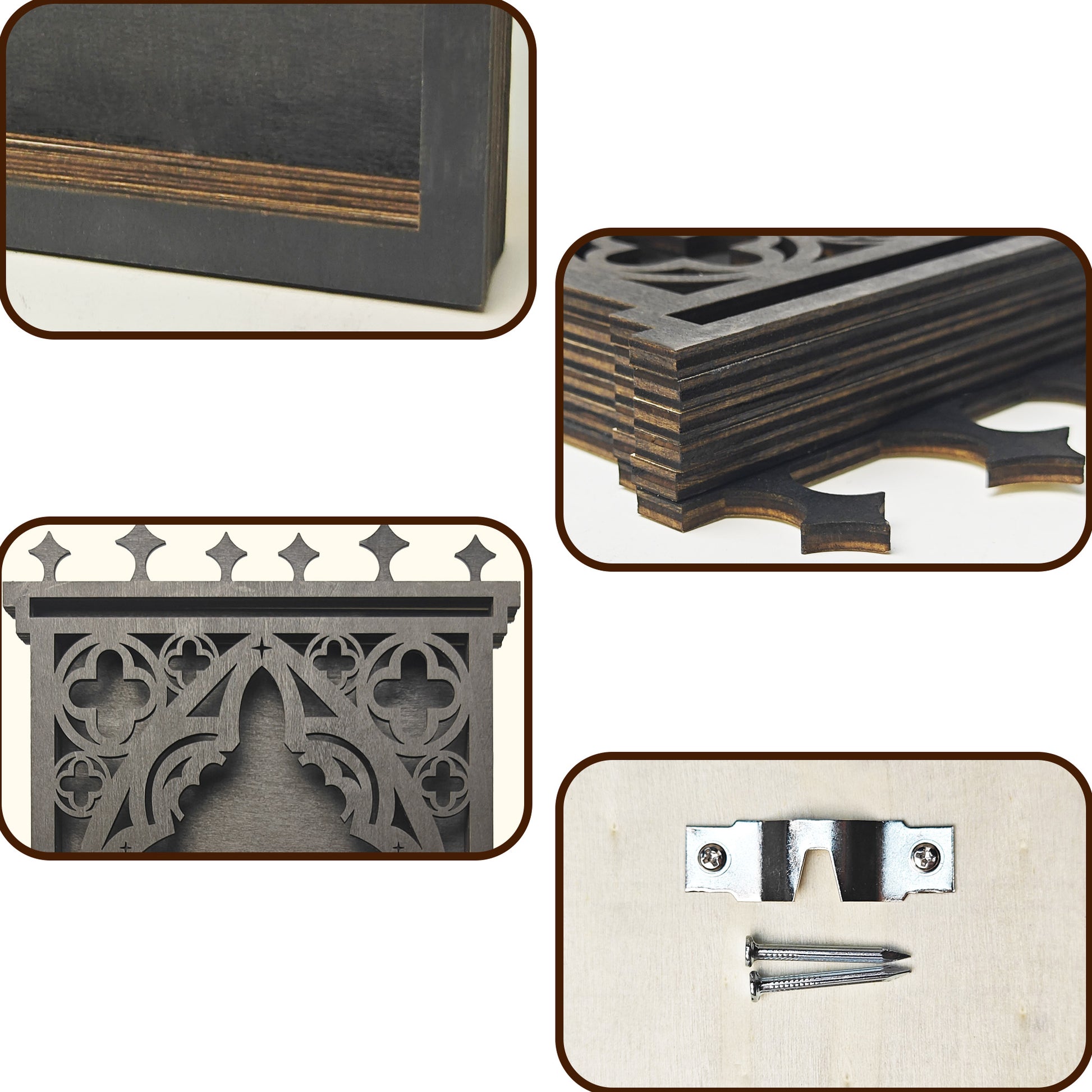 - Unique & Charming Design: Featuring a meticulously carved arch design of a hollowed-out magic circle pattern which is decorated by a light yellow vivid star carving on the front, FNYDOX Crystal Display Shelf is beautiful, elegant and attractive to perfectly match with different crystals and decor styles.