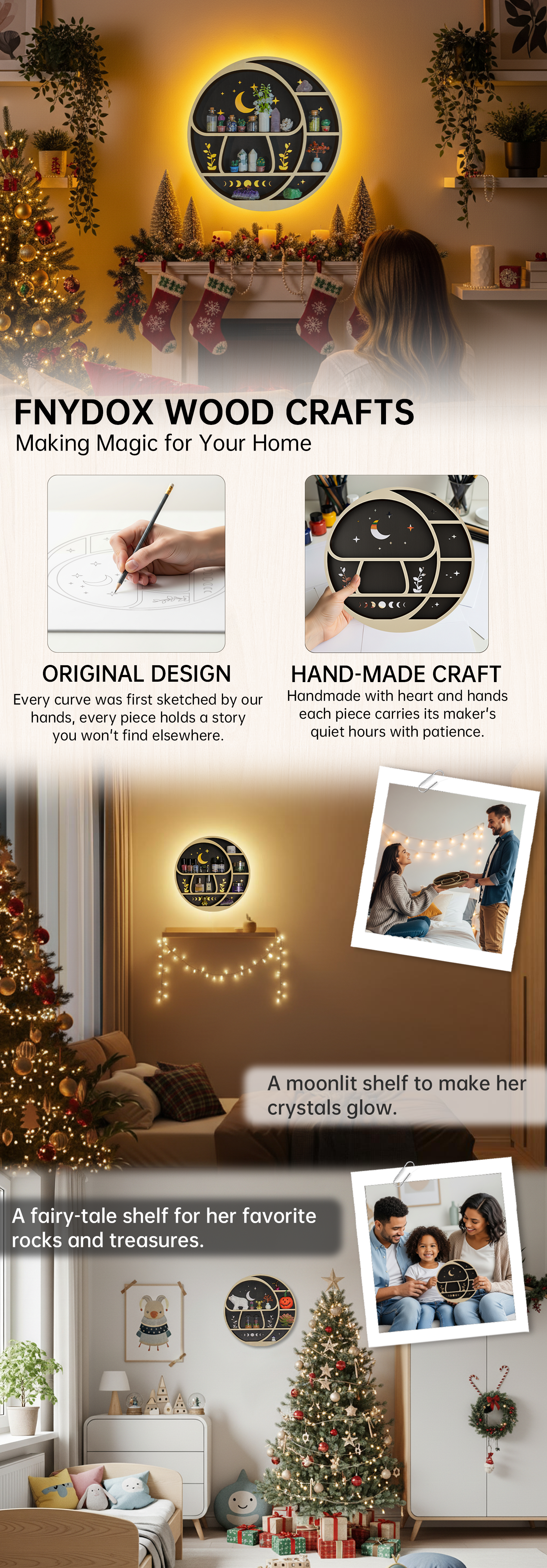 FNYDOX Mushroom and the Moon Shelf with LED Light
