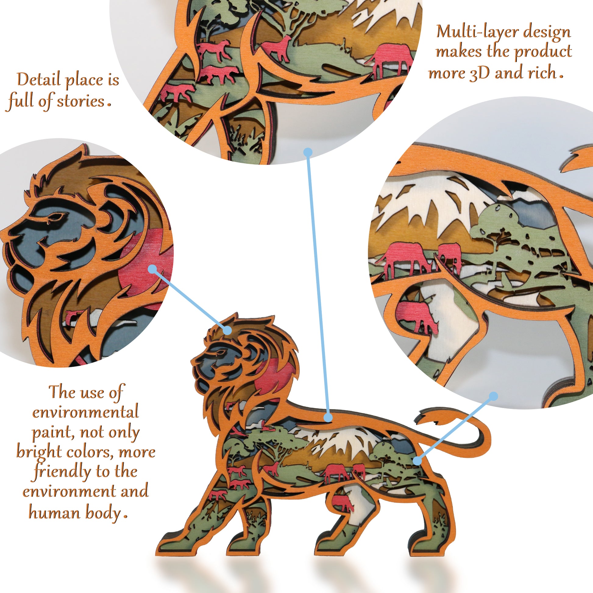 - 🦁Wooden Craft Highlights: Exquisite wooden handicrafts add an outdoor natural atmosphere to the indoor space and the infinite extension of indoor and outdoor. Suitable for home decor, cafes, bars, farmhouses, desks, closets, bookshelves, and walls, it is a good feeling natural and warm atmosphere.