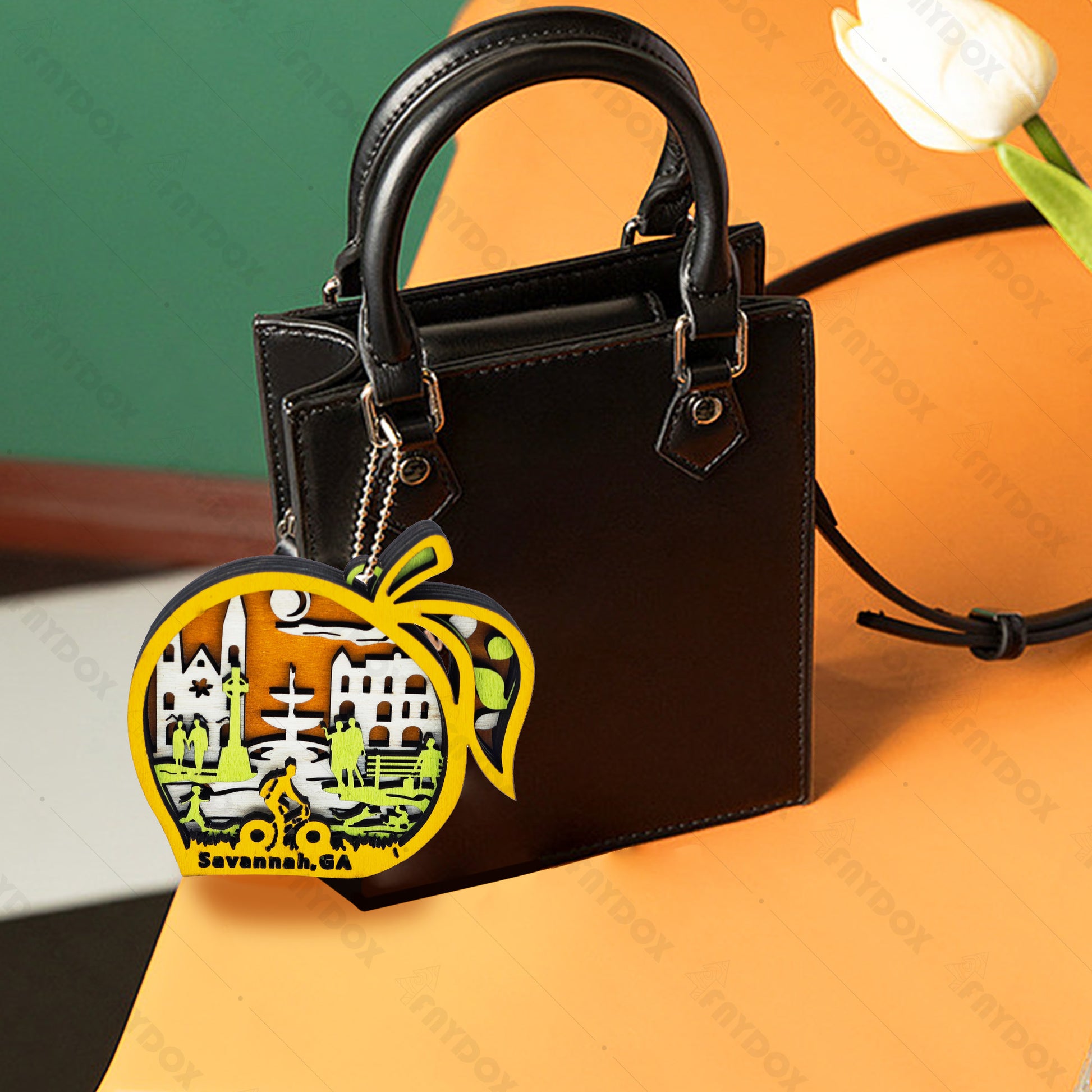 Peach Wood Carving Refrigerator Magnet Pendant