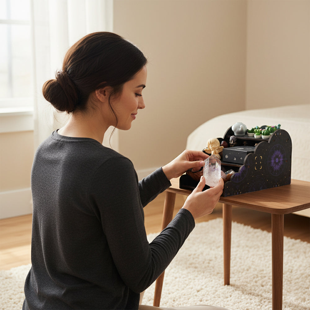 - Versatile Display Capabilities: This shelf is perfect for displaying decorative items such as crystals, stones, and other small treasures. Its unique design not only highlights your collection but also adds a touch of elegance and whimsy to your living space.