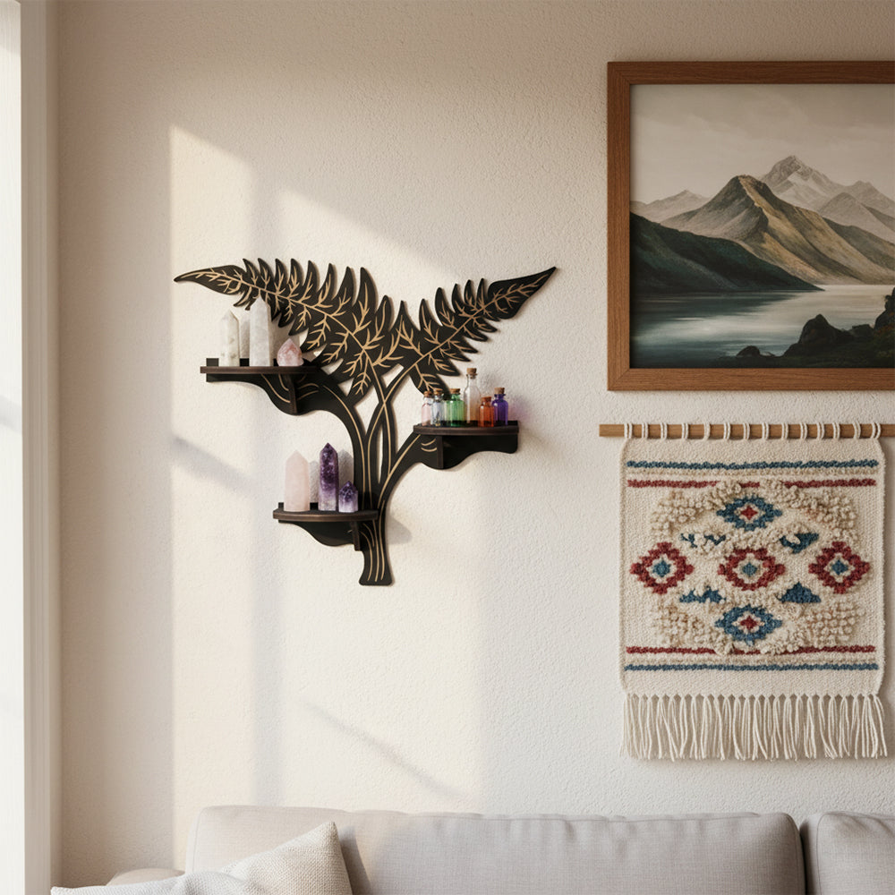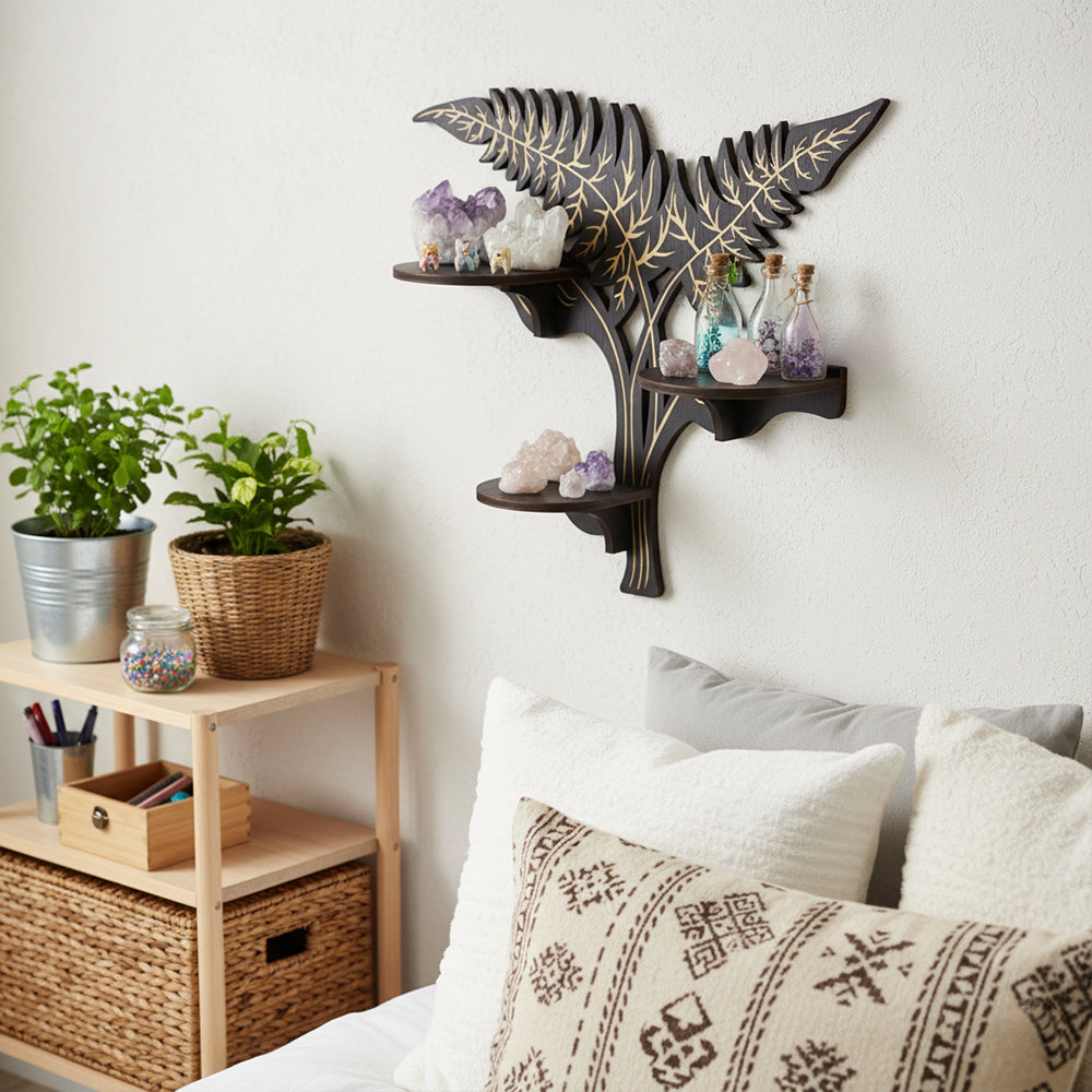 - Versatile Display Capabilities: This shelf is perfect for displaying decorative items such as crystals, stones, and other small treasures. Its unique design not only highlights your collection but also adds a touch of elegance and whimsy to your living space.